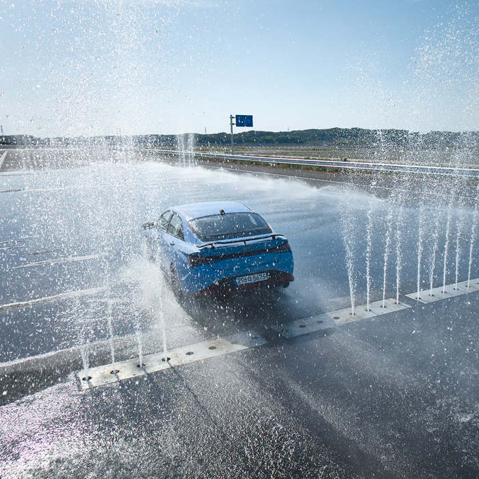 한국테크노링의 시그니처 코스라 불리는 고속주회로는 최고 속도 250km/h의 고속 주행 테스트를 위해 설계되었으며, 4차선 트랙 위에서 고속, 직선 주행은 물론 슬라럼 주행까지 가능합니다. 총 길이 4.6km로 뱅크* 부분의 기울기는 무려 38.87° 로 극한의 테스트를 완성합니다.